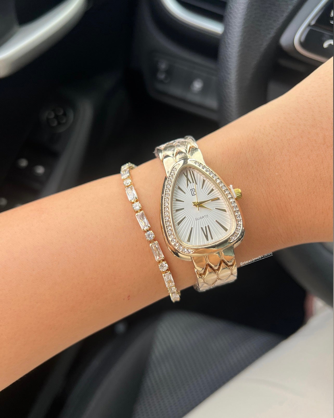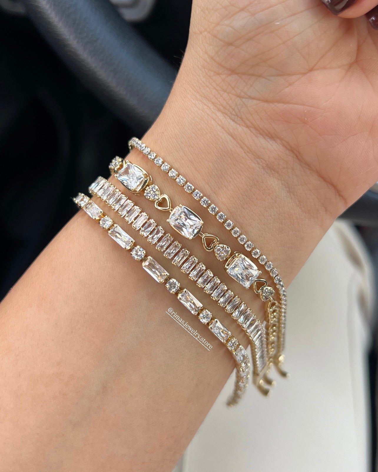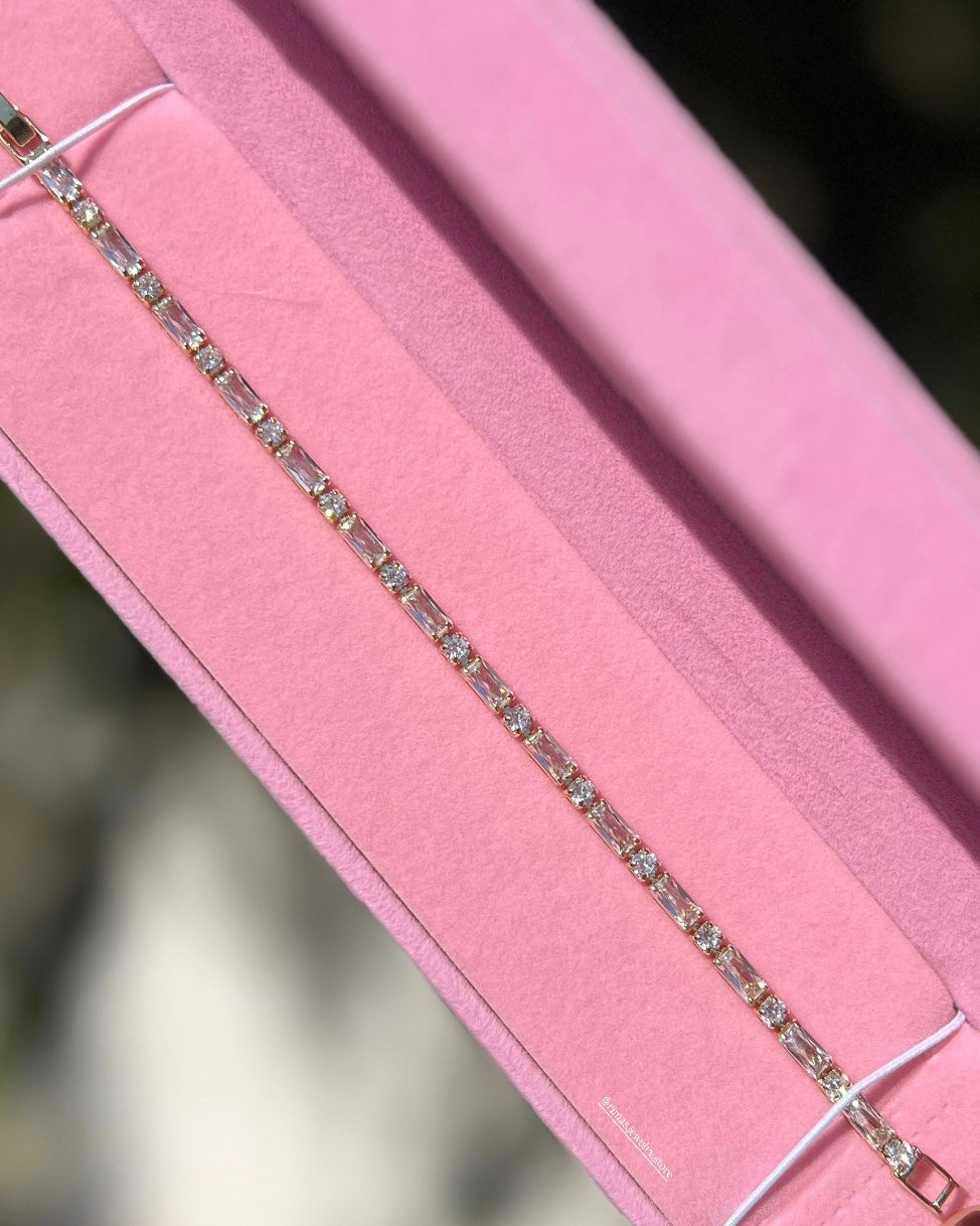Un design raffiné qui alterne des pierres baguette et rondes pour un éclat irrésistible. Son style minimaliste et chic en fait un bijou facile à porter au quotidien, tout en étant assez élégant pour sublimer une tenue de soirée.