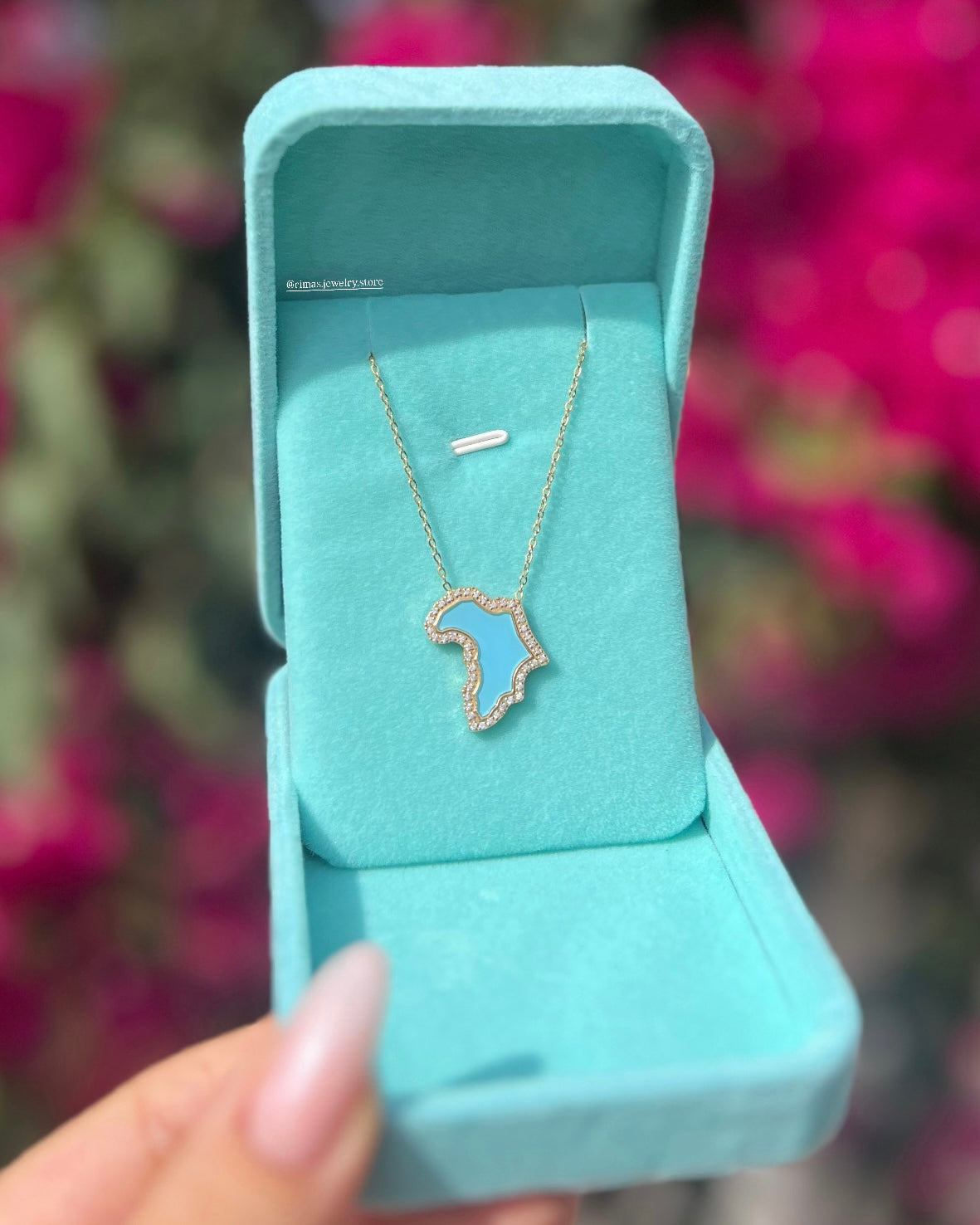 Affiche fièrement tes origines avec ce collier en forme de carte d’Afrique, alliant élégance et symbolique. Le centre turquoise vibrant, entouré de zircons scintillants, en fait un bijou à la fois affirmé et raffiné.